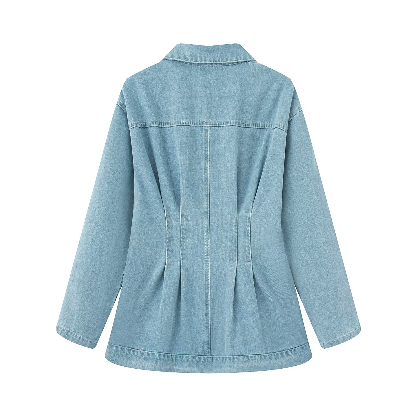 Lapel Waist Denim Jacket and Trousers