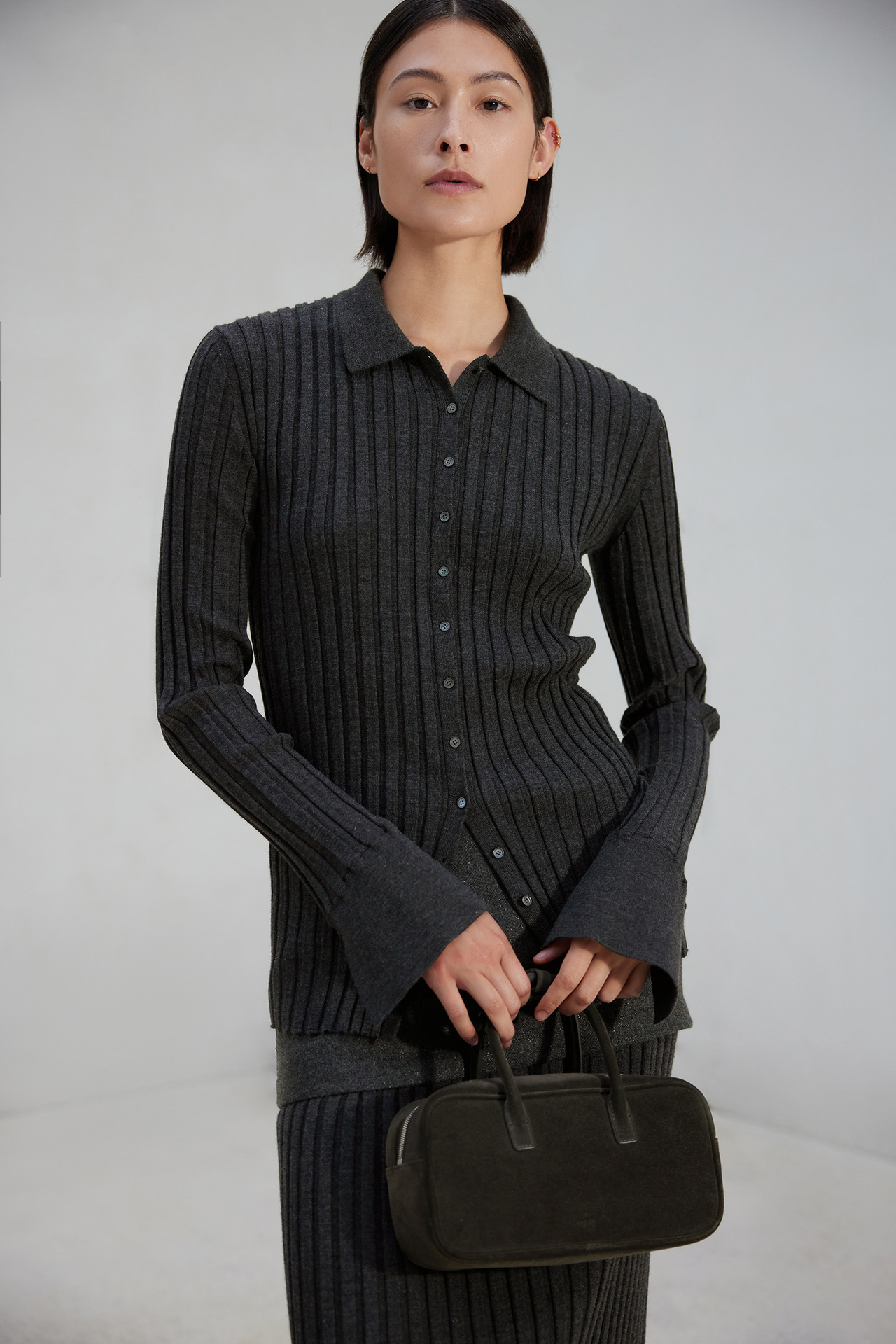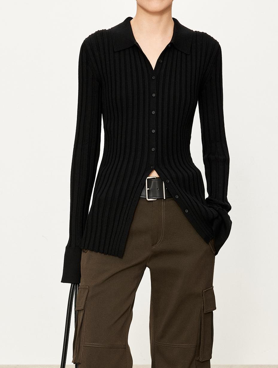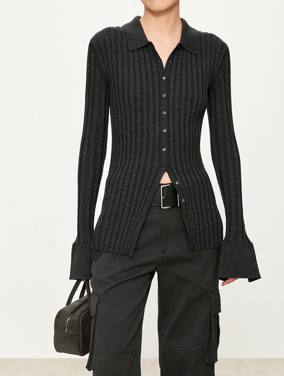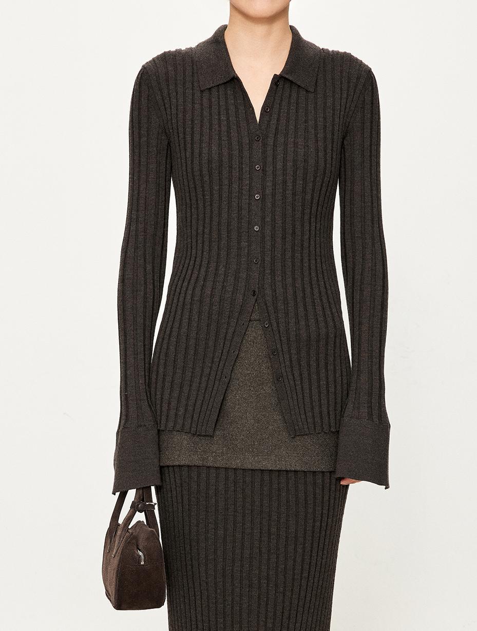 The TYRA Ribbed Wool Polo is crafted from ultra-fine premium wool, designed for understated elegance and everyday refinement. Its sculpting ribbed texture creates a clean, elongated silhouette, while the minimalist polo collar adds a timeless, effortless character.