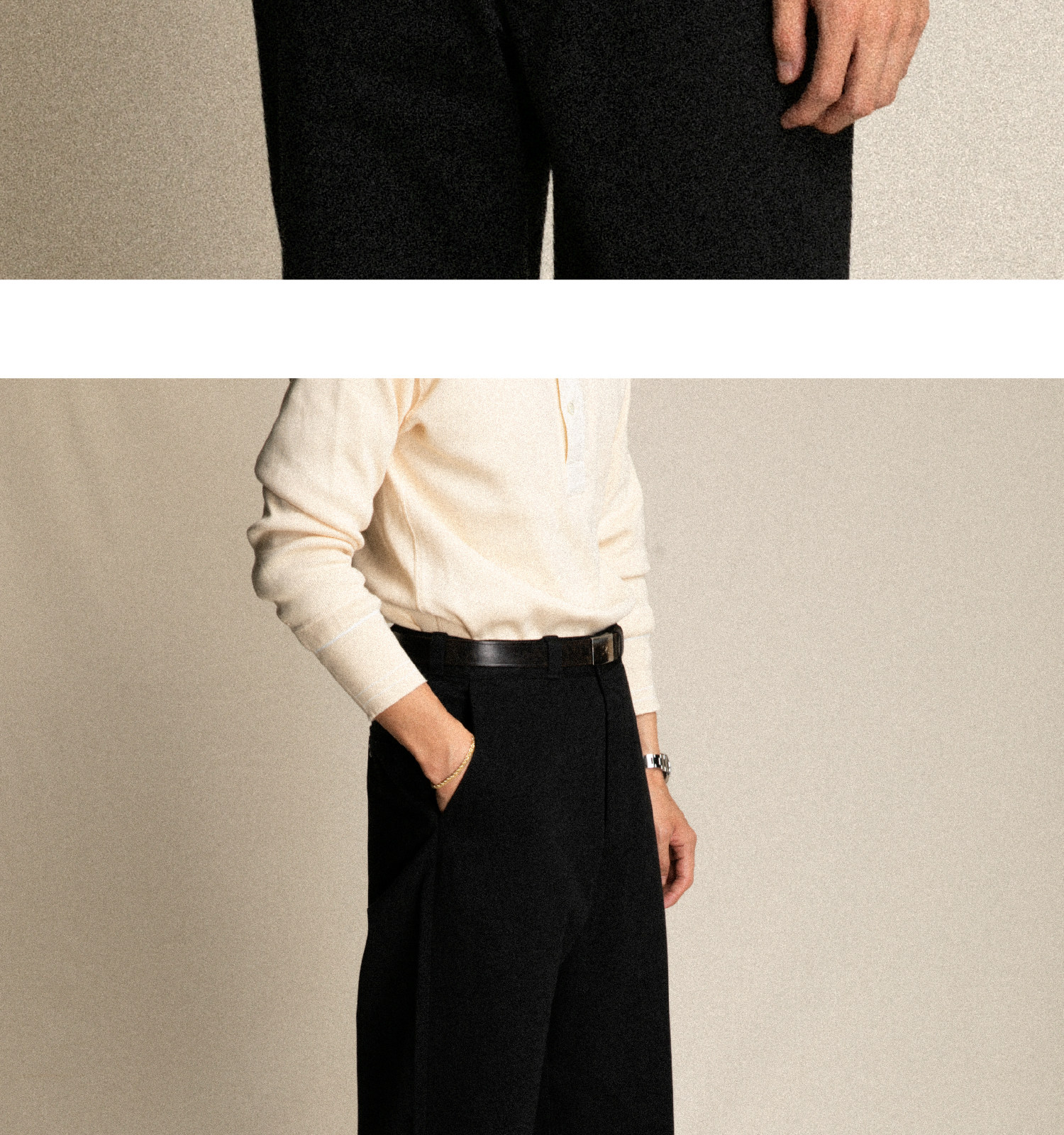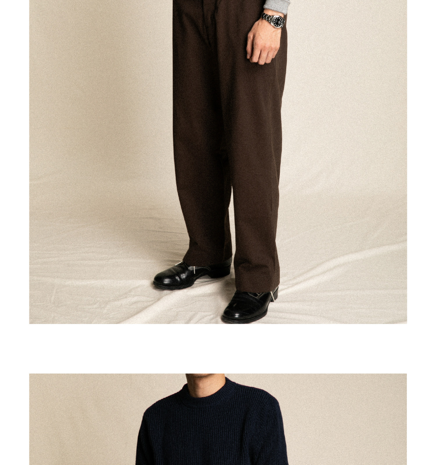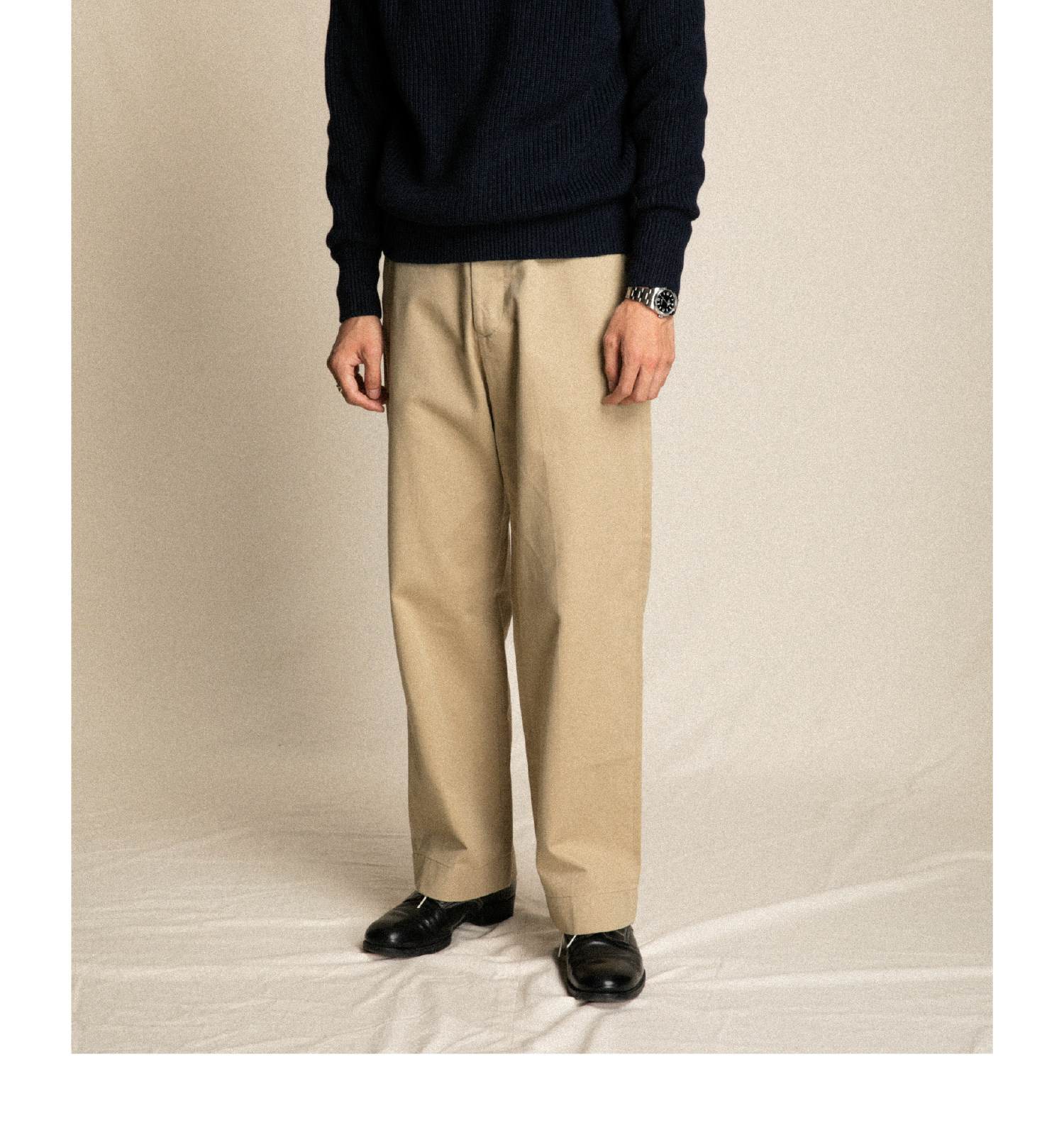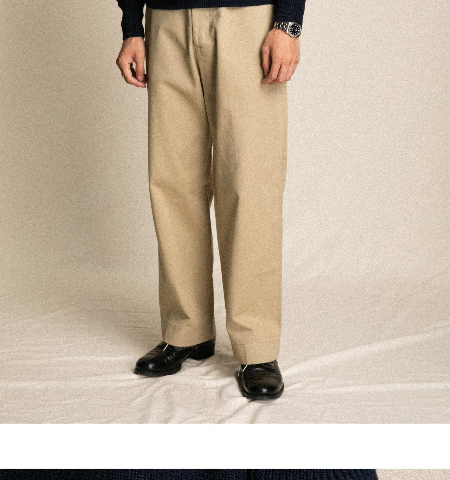 • Wide-Leg Cut – Straight trouser legs with a relaxed, modern profile