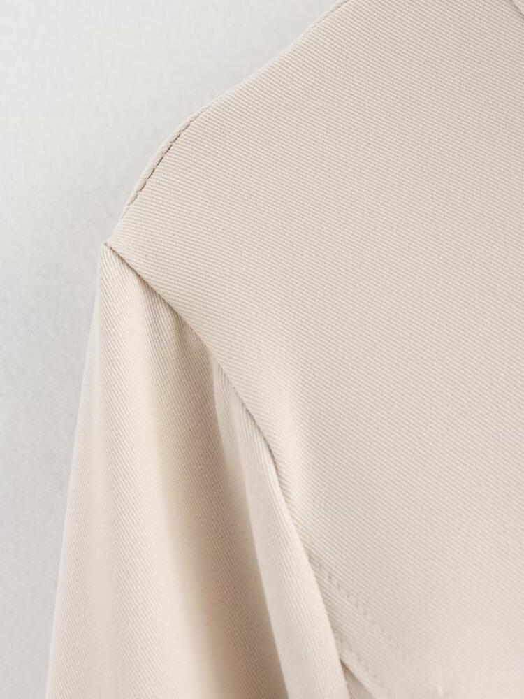 Stand Collar & Long Sleeves: Elegant structure for versatile wear
