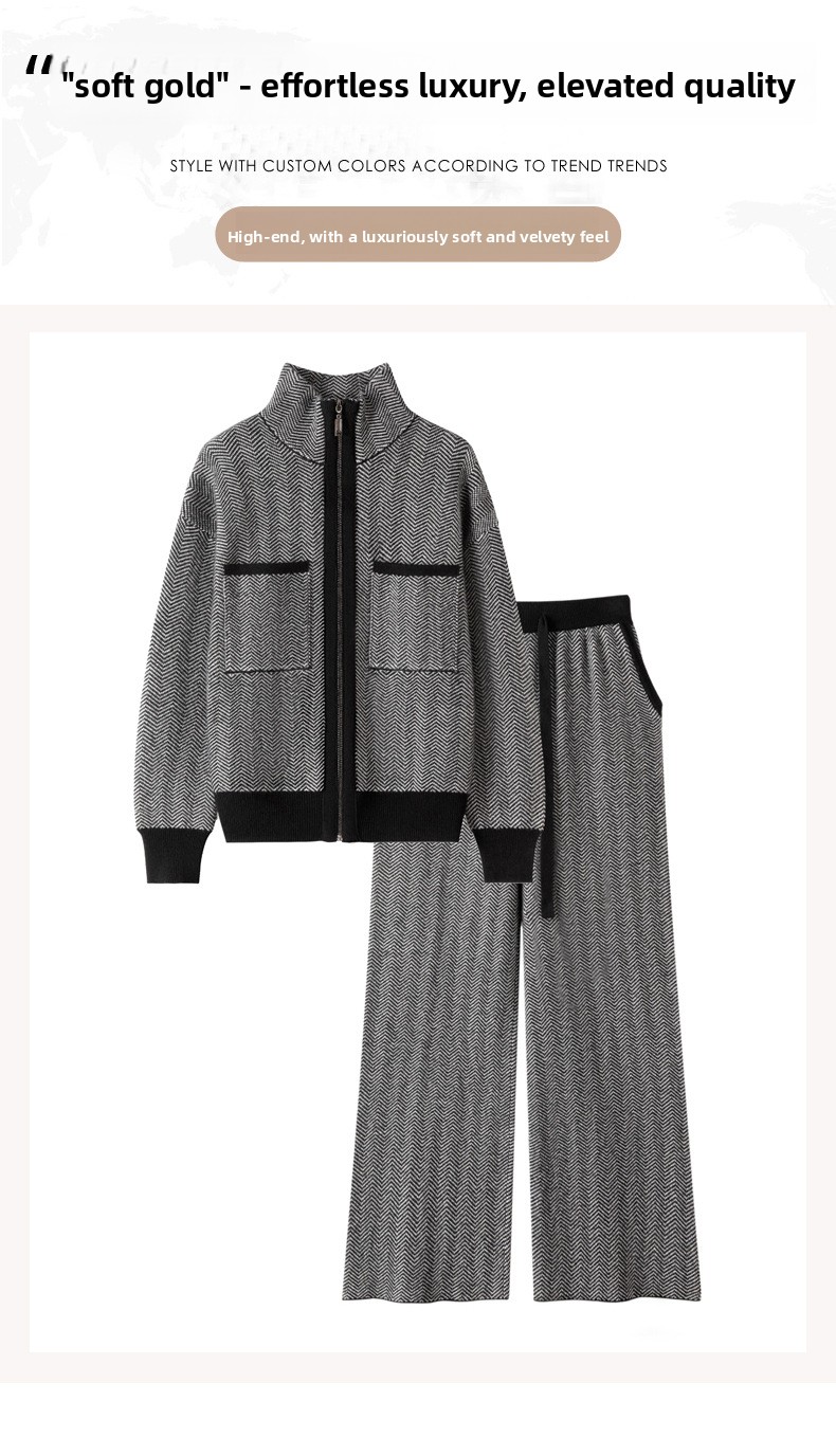 • Relaxed Fit: Loose cardigan and wide-leg pants for casual versatility